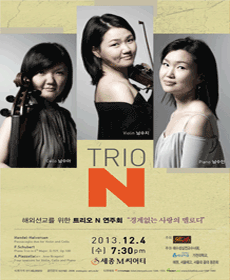 Trio N은 솔로이스트로서도 활발한 활동을 하고 있는 첼리스트 남수아, 바이올리니스트 남수지, 피아니스트 남수민으로 구성된 자매 트리오이다. 이들의 데뷔는 2007년 4월 호암아트홀에서 있었던 창단연주를 통해 이루어졌으며, 이 공연을 통해 Trio N은 세 연주자의 완벽한 하모니로 관객과 평론가들에게 큰 호응을 얻었다. 같은 해 10월 정동극장에서 주최하는 정오의 음악회에 초청되어 관객들의 큰 호응을 얻었다. 이들의 목표는 음악을 통해 더욱 폭넓은 청중들에게 가까이 다가서고, 교감을 나누고자 하는 데에 있다. 독주가 자신과의 치열한 싸움을 이겨냄으로 청중들에게 깊은 감동을 준다면, 실내악은 구성원간의 조화와 사랑, 화합을 통해 독주와는 다른, 보다 따뜻하고 인간적인 감동을 전한다. 남수아, 남수지, 남수민은 솔로이스트로 인정 받는 연주자이지만, Trio N만의 음악을 통해 더 많은 사람들에게 따뜻함을 전하기 위해 노력할 것이다. 탄탄한 실력을 기반으로 완벽한 하모니를 연주하는 이들의 활동이 기대된다.From PLAY Information