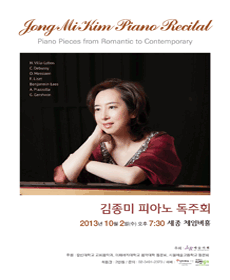 피아니스트 김종미는 예원, 서울예고를 거쳐 이화여대 음대를 수석 졸업하고 동 대학원에서 재학 중 유학하여 독일 하이델베르그-만하임 국립음대 대학원에서 K. A Diplom과 최고연주자 학위, 스위스 쥬리히 국립음대 대학원에서 Konzertreife Diplom을 취득하였다. 유럽에서의 활발한 활동을 뒤로 하고 귀국한 후 대학에서 후학을 양성하던 중, 1999년 도미하여 전액장학생으로 미국 피츠버그 카네기 멜론 대학 대학원을 졸업하여 아티스트 디플로마 학위를 받았다. 국내외에서 다수의 독주회, 협연, 듀오 등으로 꾸준한 음악적 활동을 펼치고 있으며, 2008년 6월에는 미국 South Carolina의 Charleston College 초청으로 Charleston Spoleto Festival에서 독주회를 하였다. 현재 칼빈대학교 교회음악과 교수로 재직 중이다.From PLAY Information