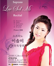 지난 2006년 독창회를 비롯하여 차성실 & 이솔미 2인 음악회, 금정수요음악회 소프라노 이솔미 & 바리톤 안영중 듀오콘서트를 개최하여 학구적인 레퍼토리를 전한바 있는 그녀는 가족음악회, 부산 관악제, 한 여름 밤의 콘서트, 청소년을 위한 음악회 등에 출연하였고, Repertorio lirico Teatrale(Latina Italia), 제1033회 MBC 목요음악회 신년음악회, 디바들과 함께하는 클래식여행, 실내악의 향연, 5월 평송 음악회, 한 여름 밤의 음악 산책, 스페인으로의 여행 등 폭넓은 레퍼토리를 바탕으로 다양한 무대에서 활동해 오고 있으며, 오는 4월 부산 금정문화회관에서 개최하는 금정수요음악회로 관객과의 또 다른 만남을 준비하고 있다.