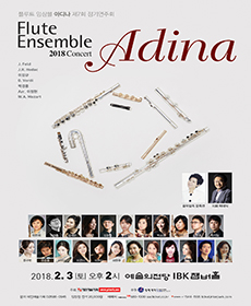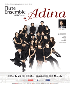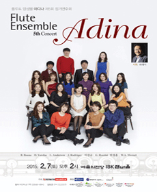 플루트 앙상블 아디나는 플루트를 전공하는 젊은 영재들로 구성된 단체로 한국 플루트계의 중견 연주자이며 수원대 겸임교수로 재직 중인 문록선씨와 국내 정상급 음악가들이 지금까지 한 번도 시도되지 않았던 새로운 앙상블 단체의 구현을 위해 만든 앙상블이다. 이미 여러 차례에 걸쳐 타악기, 마임 등과 함께 기존 독주회와는 다른 색깔의 참신한 형태의 연주회를 실험해 왔던 문록선씨는 이번에 오래 동안 마음 속에 간직하고 있던 젊은 연주자들로 구성된 앙상블을 통해 대중에 한 걸음 더 다가 간 클래식 음악, 젊은이들과 함께 호흡하는 기성세대, 음악의 아름다움을 통한 삶의 희망을 추구하는 자신의 염원을 구체화하였다. 아디나의 교육은 앙상블, 드라마, 이론의 세 파트로 구성되어 있으며 각 분야에서 활발히 활동하고 있는 최고 수준의 예술가들이 함께 하고 있다. 새로운 교육 방법의 실현을 통해 극대화된 음악적 능력을 갖춘 플루트 앙상블 아디나는 영국 베드포드 뮤직 페스티벌에서의 공연을 비롯, KBS TV 출연 등 수차례에 걸쳐 이미 그 탁월한 연주력을 선보인 바 있으며 2010년 정기연주회에서 미쉘 모라게스와 함께 연주한 바 있다.From PLAY Information