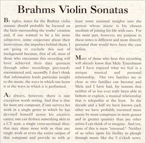 Brahms: Violin SonatasApril 26, 2005