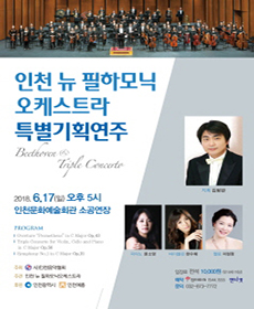 인천 뉴 필하모닉오케스트라는 2010년에 인천음악협회에서 창단한 교향악단으로서 80명 인천출신의 연주자들로 구성되어있으며, 교향악단원로서의 31년이라는 풍부한 음악적 경험을 쌓은 이종관 음악감독을 중심으로 전공자들끼리 뜻을 하나로 모아서 시작된 순수한 클래식프로단체입니다. 정기연주회, 청소년을 위한연주회. 협주곡의 밤, 찾아가는 연주회, 초청연주회, 수시연주회, 신인음악회, 해외연주회 등, 연간 20회 공연을 목표로 다양한 프로그램으로 관객들에게 다가갈 것이며, 앞으로 시민들의 사랑과 성원에 기대가 되는 관현악단입니다.From PLAY Information