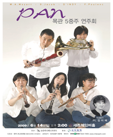 섬세한 해석과 진취적인 발상으로 음악계 전반에서 큰 호응을 얻고 있는 PAN 목관5중주는 목관연주의 대중화와 활성화를 통해 관객으로부터의 저변확대와 미래 유망주 발굴에 사명감을 갖고 결성됐으며, PAN 이라는 뜻은 그리스 신화의 목신을 지칭하는 명칭에서 따온 것이다. PAN 목관5중주는 플루티스트 김미숙(숙명여대 교수), 오보이스트 김수금(서울시향 단원), 클라리네티스트 선우지현(세종대 출강), 바수니스트 주장현(코리안 심포니 오케스트라 단원), 호르니스트 이정헌(성남시향 단원)으로 이뤄져 있다. 국내 정상급 오케스트라 단원들과 이미 확고하게 자리매김한 중진 연주자들로 구성된 PAN 목관5중주는 서로의 음악적 공감대와 개개인의 화려한 경력이 돋보이는 앙상블 그룹이다.