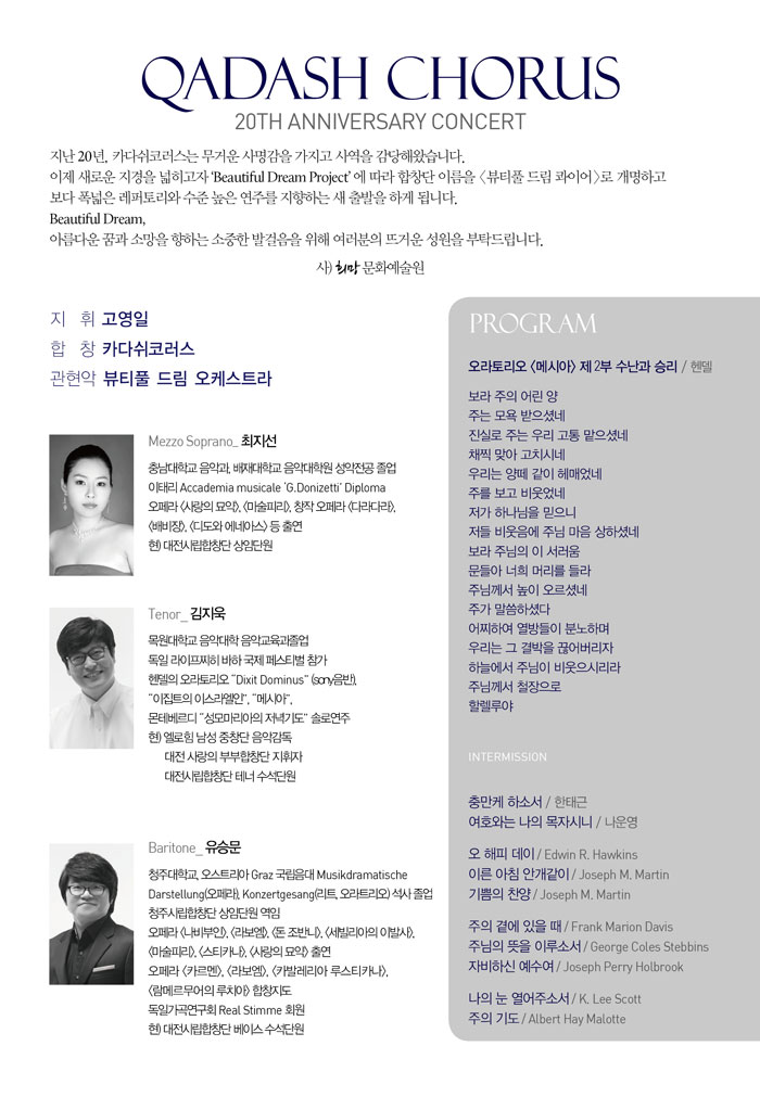 카다쉬코러스 창단 20주년 음악회 - 대전