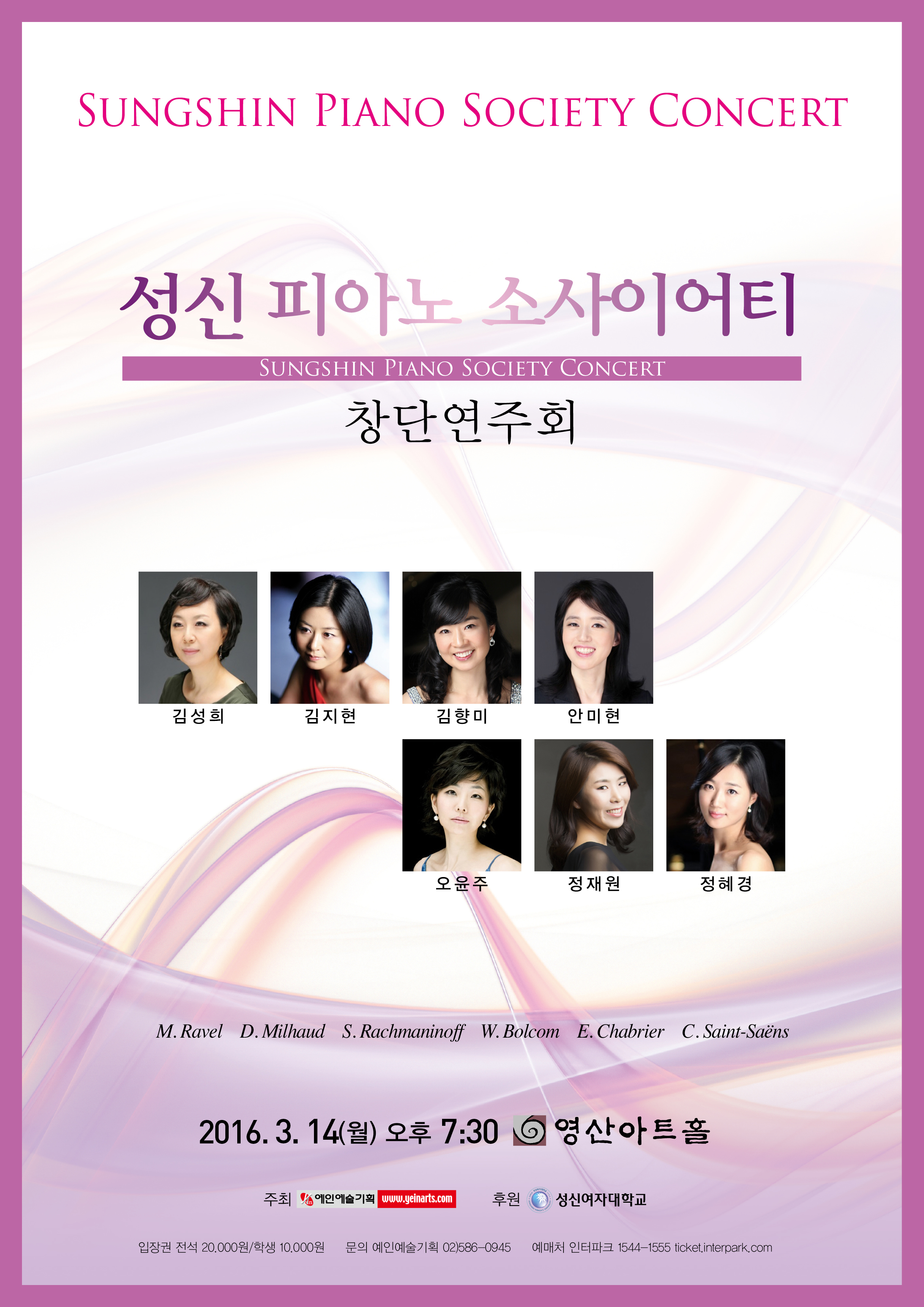 S. Rachmaninoff Fantasy Suite for 2 Pianos, Op. 5, No. 1 W. Bolcom The Garden of Eden M. Ravel Ma mere l'Oye for Piano 4 hands D. Milhaud Scaramouche Suite for 2 Pianos 4 hands, Op. 165 E. Chabrier "Espana" for 2 Pianos 8 hands C. Saint-Saens Pianisten - Cocktail