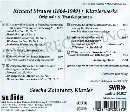 Transcription for Piano of Richard Strauss's "Heimkehr" Op. 15/5