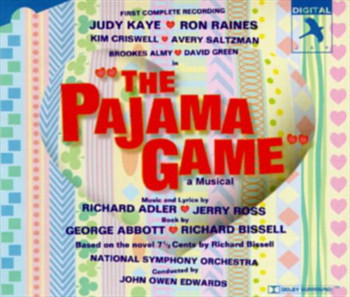작곡가: Richard Adler작곡년도: 1954평균연주: 62:08악장1Overture4:282Pajama Game1:223Racing With the Clock2:454New Town Is a Blue Town2:585Racing With the Clock0:306I'm Not at All in Love4:087I'll Never Be Jealous Again3:588Hey There3:299Her Is2:5910Sleep Tite0:3611Once-A-Year Day!4:2912Her Is (Reprise)1:2413Small Talk4:0414There Once Was a Man3:1515Factory Music/Slow Down1:2016Finale Act One1:3217Entr'acte3:2018Steam Heat4:3519Hey There (Reprise)2:4420Think of the Time I Save2:4521Hernando's Hideaway3:3722I'll Never Be Jealous Again Ballet7:0023Seven and a Half Cents4:3824There Once Was a Man (Reprise)1:1325Finale Act Two: the Pajama Game Closing/Curtains1:4926Exit Music1:4227Hey There3:22