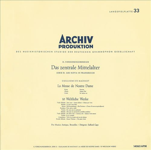 Guillaume de Machaut: Sacred and Secular Music; Messe de Nostre DameApril 1, 2011