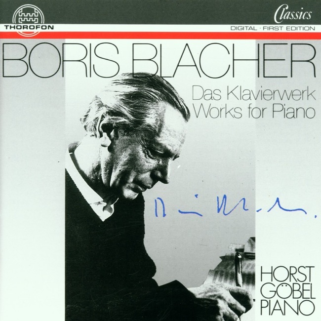 GermanyBirth:January 19, 1903 in Niu-chang, ChinaDeath:January 30, 1975 in Berlin, GermanyPeriod:ModernGenre:ChamberKeyboardOrchestralBoris Blacher was a German composer and conductor who was born on January 19, 1903, in Newchwang, China. His parents were Russian and German, and they moved to Germany when he was a child. Blacher showed an early interest in music and began studying piano and composition at a young age. Blacher studied at the Berlin State Academy of Music from 1920 to 1922, where he was taught by Friedrich Koch and Friedrich Ernst Koch. He then studied composition with Arnold Schoenberg in Berlin from 1923 to 1925. Blacher was deeply influenced by Schoenberg's twelve-tone technique, and he incorporated it into his own compositions. In 1927, Blacher became a conductor at the Berlin State Opera, where he worked until 1933. During this time, he composed several operas, including "Preussisches Märchen" (Prussian Fairy Tale) and "Der Großinquisitor" (The Grand Inquisitor). Blacher's music was often experimental and avant-garde, and he was associated with the Neue Sachlichkeit (New Objectivity) movement in music. In 1933, Blacher was dismissed from his position at the Berlin State Opera because of his Jewish ancestry. He then moved to Turkey, where he worked as a music teacher and conductor. In 1936, he returned to Germany and became a professor of composition at the Berlin State Academy of Music. During World War II, Blacher's music was banned by the Nazi regime because of its modernist style. However, he continued to compose and was able to have some of his works performed in secret. After the war, Blacher became a professor of composition at the Hochschule für Musik in Berlin, where he taught until his retirement in 1968. Blacher's music is characterized by its modernist style, use of dissonance, and incorporation of elements of jazz and popular music. He composed in a variety of genres, including opera, ballet, orchestral music, chamber music, and vocal music. One of Blacher's most famous works is his ballet "Street Scene," which was premiered in 1949. The ballet is set in a city street and depicts the lives of the people who live there. The music is characterized by its use of jazz rhythms and harmonies, and it has been described as a "jazz ballet." "Street Scene" was a critical and popular success, and it helped to establish Blacher's reputation as a composer. Blacher also composed several operas, including "Abstrakte Oper Nr. 1" (Abstract Opera No. 1), which was premiered in 1953. The opera is characterized by its use of spoken dialogue and its incorporation of elements of jazz and popular music. It was a critical success and helped to establish Blacher as one of the leading composers of his generation. Blacher's other notable works include his "Concertante Musik" for piano and orchestra, which was premiered in 1950, and his "Divertimento for Orchestra," which was premiered in 1954. Both works are characterized by their use of dissonance and their incorporation of elements of jazz and popular music. Blacher was also a respected conductor, and he conducted many of his own works as well as the works of other composers. He was particularly interested in the music of Igor Stravinsky, and he conducted several of Stravinsky's works during his career. Blacher died on January 30, 1975, in Berlin, Germany. He is remembered as one of the leading composers of the mid-20th century, and his music continues to be performed and studied today.More....