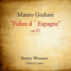 Composer:Mauro GiulianiGenre:ChamberStyle:VariationsPublication Date:ca. 1814Average_duration:4:42Mauro Giuliani's "Variations on Folies d'Espagne, Op. 45" is a guitar composition that was composed in the early 19th century. The piece was premiered in Vienna in 1813 and quickly became one of Giuliani's most popular works. The composition consists of a theme and variations, with the theme being a traditional Spanish melody known as "Folies d'Espagne." Giuliani's variations on the theme are highly virtuosic and showcase the technical capabilities of the guitar. The piece is divided into six movements, each of which features a different variation on the theme. The first movement is a simple statement of the theme, followed by a series of increasingly complex variations. The second movement features a fast and lively variation, while the third movement is slower and more contemplative. The fourth movement is a highly virtuosic variation that showcases Giuliani's skill as a composer and guitarist. The fifth movement is a more subdued variation that features a delicate melody played over a simple accompaniment. The final movement is a fast and energetic variation that brings the piece to a thrilling conclusion. Overall, "Variations on Folies d'Espagne, Op. 45" is a masterful composition that demonstrates Giuliani's skill as a composer and guitarist. The piece is characterized by its technical virtuosity, intricate harmonies, and beautiful melodies. It remains a popular work in the classical guitar repertoire and is frequently performed by guitarists around the world.More....