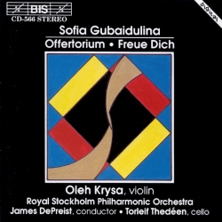 Composer:Sofia GubaidulinaGenre:ChamberStyle:SonataCompose Date:1981First Performance:1988Average_duration:31:02Movement_count:5Movement ...."Rejoice!" is a composition for violin, cello, and bayan (a type of Russian accordion) by the Russian composer Sofia Gubaidulina. It was composed in 1981 and premiered on October 17, 1981, in Moscow, Russia. The piece is divided into three movements and has a total duration of approximately 20 minutes. The first movement, titled "Hymn," begins with a slow and solemn introduction played by the cello and bayan. The violin then enters with a series of ascending and descending scales, which gradually build in intensity and lead to a more lively and rhythmic section. The movement ends with a return to the opening material, played in a more subdued manner. The second movement, titled "Toccata," is a fast and virtuosic display of technique for all three instruments. The violin and cello engage in a frenzied dialogue, while the bayan provides a driving rhythmic pulse. The movement is characterized by its energetic and frenetic pace, with sudden shifts in dynamics and tempo. The final movement, titled "Chorale," is a slow and contemplative piece that features a simple and lyrical melody played by the violin. The cello and bayan provide a gentle accompaniment, with the bayan occasionally adding a subtle harmonic layer. The movement gradually builds in intensity, with the violin playing increasingly complex variations on the original melody. The piece ends with a return to the opening material, played in a more subdued and introspective manner. Overall, "Rejoice!" is a complex and challenging work that showcases Gubaidulina's unique style and innovative approach to composition. The piece combines elements of traditional Russian folk music with avant-garde techniques, resulting in a rich and diverse musical landscape. The use of the bayan, a relatively uncommon instrument in Western classical music, adds a distinctive and exotic flavor to the piece. "Rejoice!" is a testament to Gubaidulina's skill as a composer and her ability to push the boundaries of contemporary classical music.More....