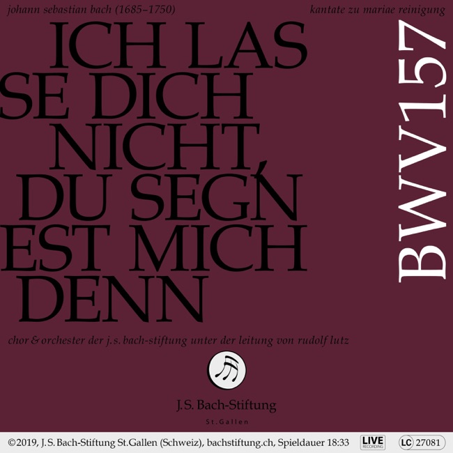 Composer:Johann Sebastian BachGenre:ChoralStyle:CantataCompose Date:Feb 6, 1727Publication Date:1886First Performance:Feb 6, 1727Average_duration:18:29Movement_count:5Movement ....Johann Sebastian Bach composed Cantata No. 157, Ich lasse dich nicht, du segnest mich denn, BWV 157, in Leipzig in 1726. The cantata was premiered on August 11, 1726, the ninth Sunday after Trinity. The work is divided into five movements and is scored for soprano, alto, tenor, and bass soloists, a four-part choir, and a small orchestra consisting of two oboes, strings, and continuo. The first movement is a duet for soprano and bass, with the bass representing God and the soprano representing the believer. The movement begins with a lively instrumental introduction, followed by the two voices singing in counterpoint. The movement is characterized by its joyful and optimistic tone, reflecting the believer's confidence in God's protection. The second movement is a recitative for the tenor soloist, who reflects on the believer's relationship with God. The tenor sings of the believer's desire to remain close to God and to receive his blessings. The third movement is a chorale, in which the choir sings a hymn based on Psalm 119:33-34. The hymn expresses the believer's desire to follow God's commandments and to be guided by his word. The fourth movement is a duet for alto and tenor, with the alto representing the believer and the tenor representing God. The movement is characterized by its tender and intimate tone, as the two voices sing in dialogue about the believer's trust in God's guidance. The final movement is a chorale, in which the choir sings a hymn based on Psalm 73:23-24. The hymn expresses the believer's confidence in God's protection and guidance, and ends the cantata on a note of assurance and hope. Overall, Cantata No. 157 is characterized by its joyful and optimistic tone, reflecting the believer's confidence in God's protection and guidance. The work is notable for its use of duets and chorales, which allow for a variety of vocal textures and expressions of faith.More....